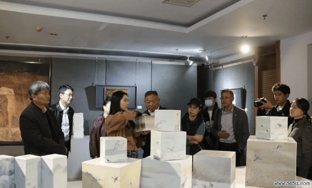 艺术家胡婷(光显)正在为参不雅嘉宾造就作品创作故事